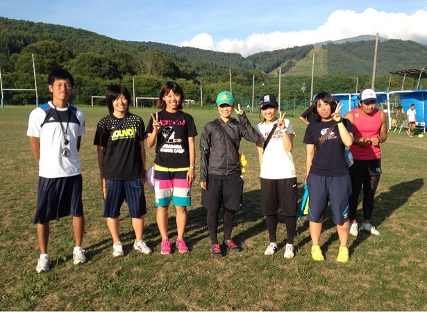 左から崎浜(大学院生1年)、ちゃん森(1年)、ほのか(2年)、ウメちゃん(2年)、みほ(1年)、あさこ(1年)、トレーナーに大変お世話になったWTB藤井(4年)