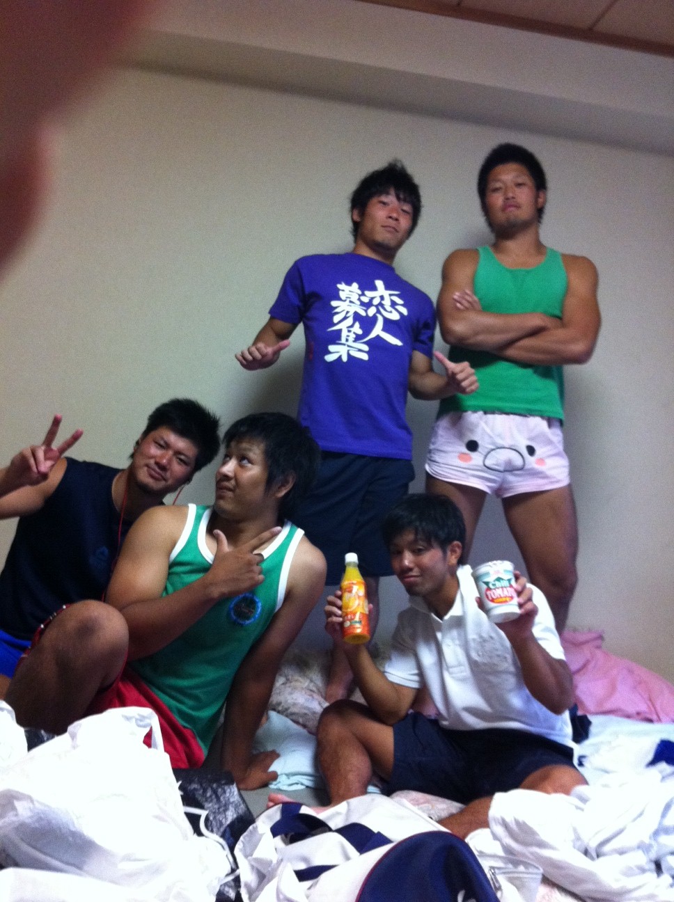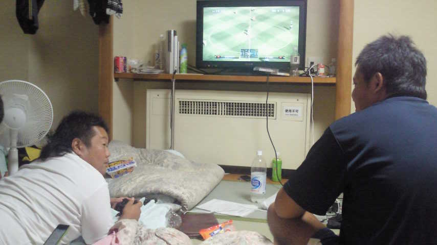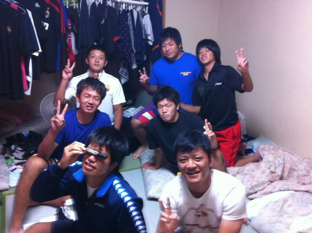 4年の石上の部屋で3年小金丸、2年家喜・長谷川、1年鶴・後藤という6人中5人がFWでPRが4人もいる暑い部屋になっております。