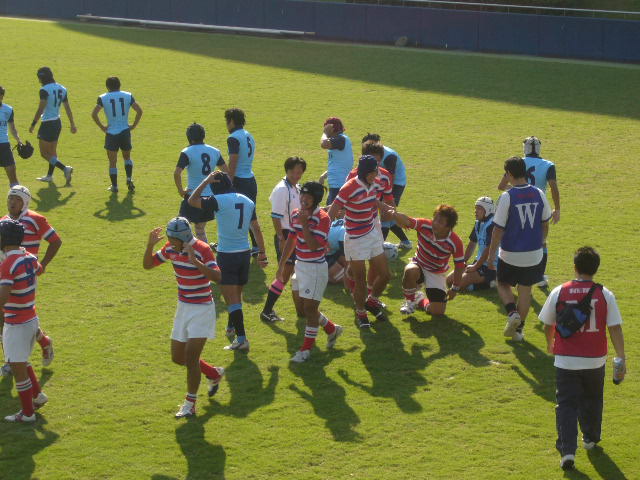 ベストプレーは前半ライン際を走られた時の、1年生CTB土肥のカバーDFタックル→ジャッカルに進呈!