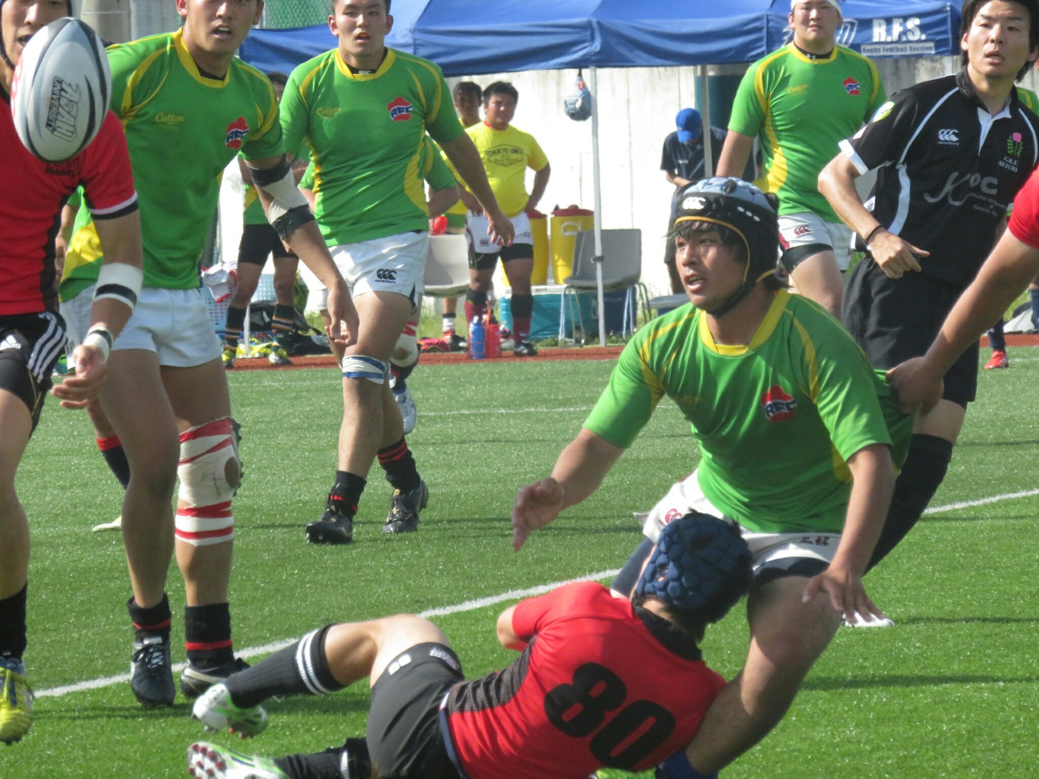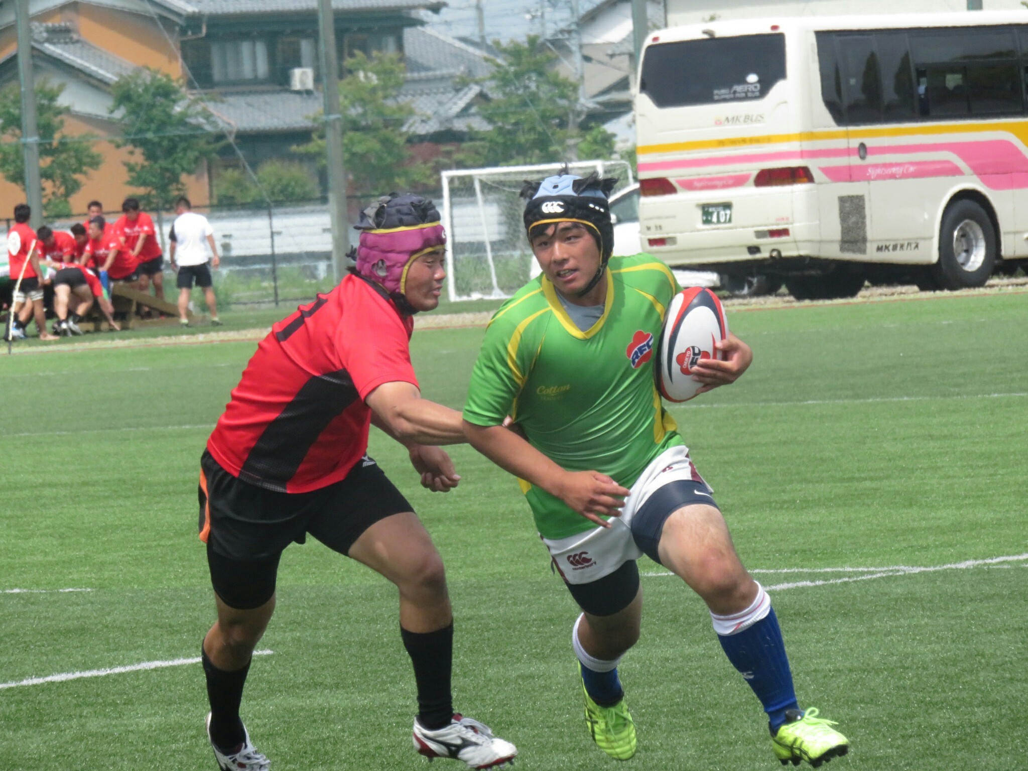 豊田通商さんとの合同練習ではスクラムやラインアウトを確認することができました。