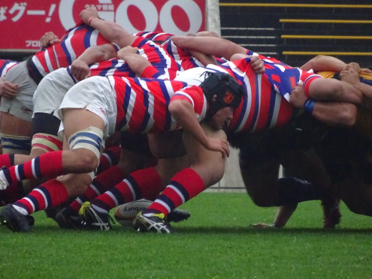 一本目は、FL下村のシンビン中にスクラムで得たアドバンテージを解消させてしまい、中部大ボールとなり、一瞬の隙をつかれてラックの上を通過されました。
